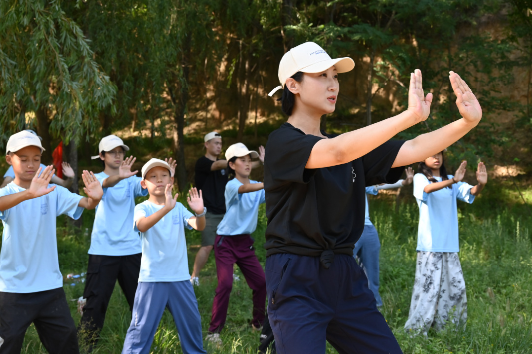 他们在营里结成伙伴,同吃同住,共学共乐。在共处的六天中,留下了很多的足迹:太阳池畔,拾起的垃圾不再玷污这汪碧绿的池水,掸落身上的浮土后起式太极,招式随风舒展参悟天人合一的智慧。